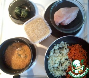 Ингредиенты для «Солнечный рис с курицей, овощами и чечевицей»: