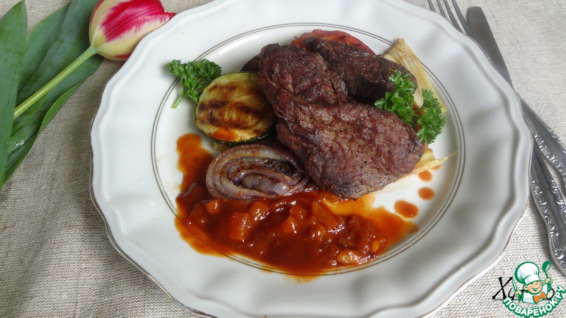 Рецепт «Говядина с овощами под соусом "барбекю"»: