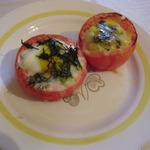 Рецепт "Горячая закуска " Яйцо запеченное в помидоре "":