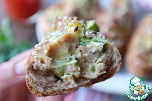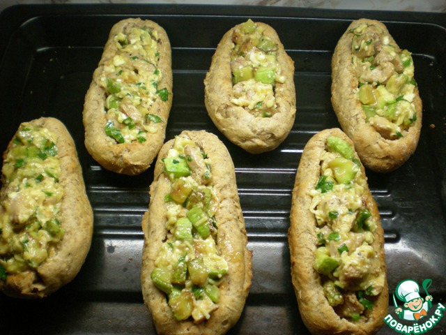 Рецепт «Хлебные лодочки с курицей и кабачком»: