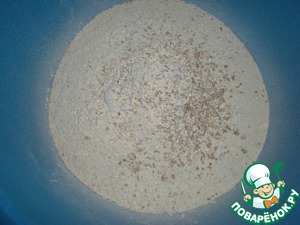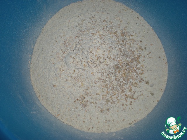 Пока поднимается опара, нужно просеять оба вида муки в миску. При просеивании ржаной цельнозерновой муки в сите остаются высевки – не выбрасывайте их, просто нужно высыпать их в муку.