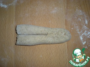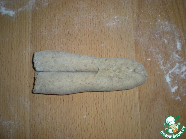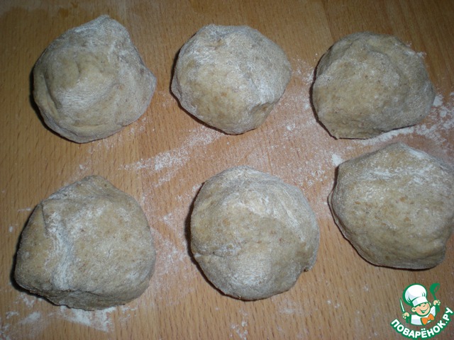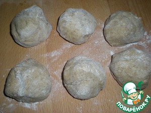 По истечении нужного времени тесто переложите на подпыленную мукой доску. Разделите его на 6 частей.