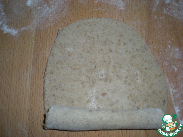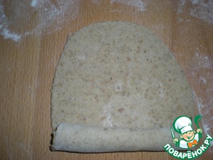 Раскатать каждый кусочек в пласт и скатать его с двух сторон к середине.