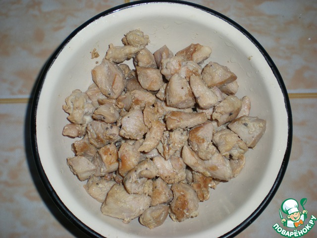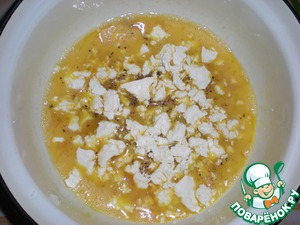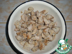 Куриную грудку нужно с вечера замариновать. Нарезать ее небольшими кусочками. Влить 2 ст. л. соевого соуса, сок половины лимона, добавить свежемолотый перец. Перемешать и оставить в холодильнике на ночь. Утром обжарить мясо на растительном масле до румяного цвета. Мясо в сковороду добавлять вместе с соусом.