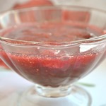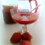Сегодня готовила в виде джема, измельчала всю клубнику. С желатином получилось отлично, джем получился не жидкий, в самый раз. Удивило то, что цвет получился тёмный.