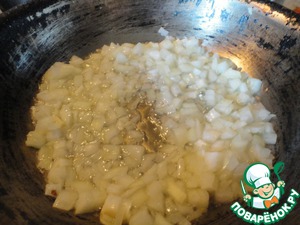 На оливковом масле сначала прижариваем лук до прозрачности.