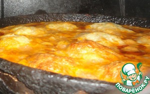 Из фарша формируем тефтели (у меня вышло 10 штук) и выкладываем в форму. Желательно взять такую форму, в которую тефтели лягут отдельно друг от друга. Силиконовые и стеклянные формы у меня для этого маленькие, поэтому я взяла "старую, добрую" чугунную сковороду. Может она и не дюже красивая, но частенько выручает!