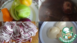 Для приготовления этого борща нужно подготовить все вышеперечисленные овощи, помыв их и почистив. Свёклу отварить до мягкости и поставить остывать, залив холодной водой.