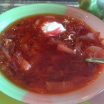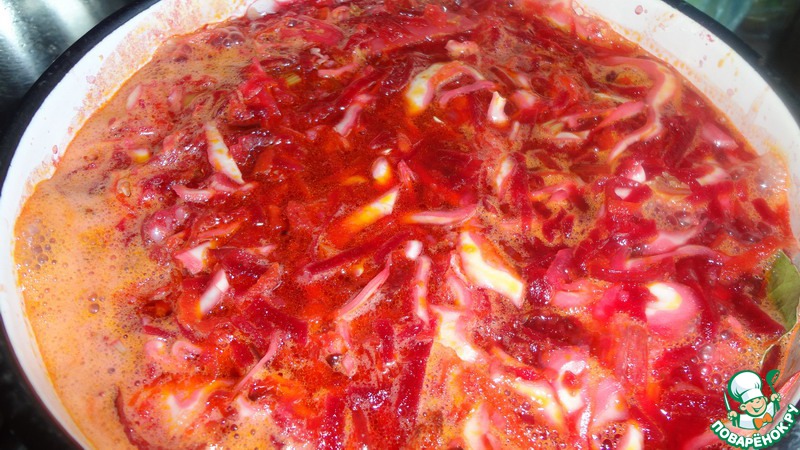 Получается очень насыщенный по вкусу и по цвету борщ.