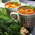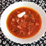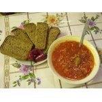 Рецепт этого борща я придумала сама. Поэтому извините, если что-то я сделала не по канонам кулинарии и, тем более, диетологии. Но поскольку рецепт рождался методом проб и ошибок долго, то и результат меня наконец-то устраивает. Я очень люблю разные супы, так что этот борщ я могу есть утром, днём и вечером во время очередной борьбы с весом. Мои друзья, конечно, подшучивают надо мной, что я постоянно сижу на диете, а результата не видно. А я про себя думаю: " Посмотрели бы вы на меня, если бы я периодически не сидела на этих диетах". Эти супы можно есть даже ночью, если вдруг вы засиделись за компьютером, случайно попали на кулинарный сайт и у вас разыгрался чрезвычайный аппетит. С чистой совестью можете съесть тарелочку (без хлеба) и со спокойной душой ложиться спать. Потому что в 4-хлитровой кастрюле этого густого борща всего 840 ккал. Так что можете добавить по одному маленькому кусочку хлеба в 50 гр, засушенного до состояния сухаря, чтобы хватило грызть на целую тарелку борща и приплюсовать к этому ещё 100 ккал. А можете прикупить модных ныне сухариков из отрубей. Вам будет вкусно и полезно. Я кладу также и 1 ч. л. йогурта. Калорий мало, а у вас будет полное ощущение, что едите суп со сметаной. Вообще он получается очень насыщенный по вкусу и такой самодостаточный, что вы смело можете наливать и своему мужу, предварительно положив туда пару кусочков мяса или ветчины. Одним словом, пробуйте.