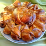 Чтобы скушать круасанопиту, нож нам абсолютно не потребуется. Нужно просто отламывать круасанчики, а "улиточка" съедается путем ее разворачивания и отламывания от нее кусочков.