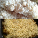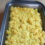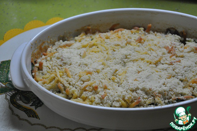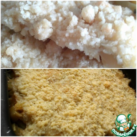 Для штрейзеля: натрите сыр на мелкой терке, добавьте муку и кусочки холодного масла. Перетрите все в крошку. Можно посолить. Я штрейзель убираю в морозилку на 5-10 минут. Он получается более рассыпчатым.