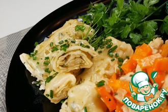 5. положить на один край кусочка овощи и брусочек сыра (около15гр).