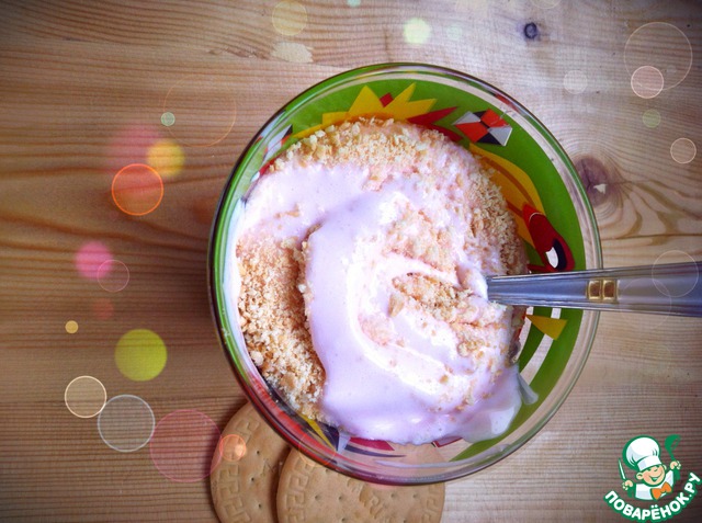 • В чашечку (креманку, форму) насыпаем немного печенья.