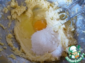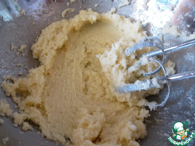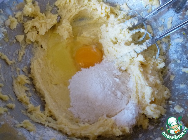 Разогрейте духовку до 180 градусов. Взбейте масло с сахаром добела при помощи миксера. Муку смешать с разрыхлителем теста.
