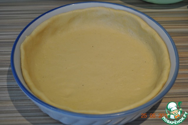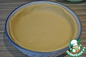 Тесто разделить на две не равные части. Большую раскатать и выложить в форму, делая борта.