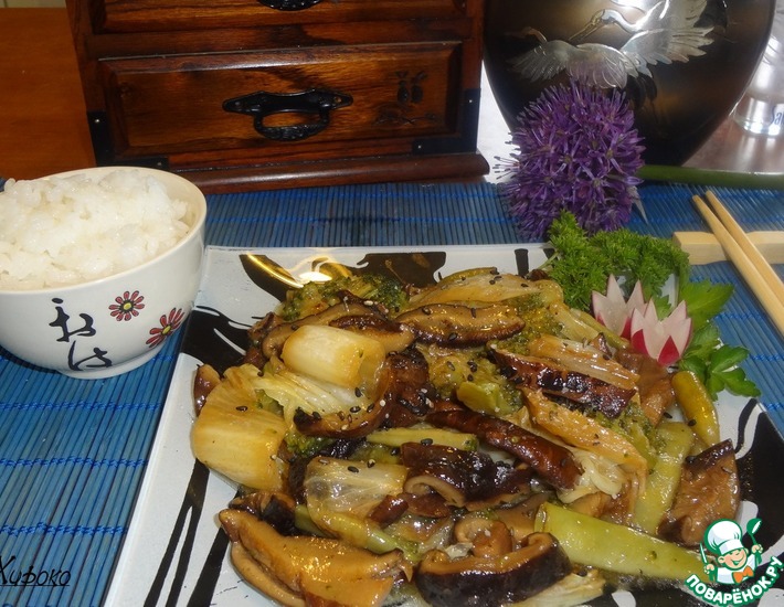 Шиитаке не дешёвые грибы. Наверное поэтому они оказались очень ароматные, вкусные и полезные. Это - замечательный антиоксидант. Для тех, кто заботится о своём здоровье и любит вкусно поесть, этот рецепт. Да, ещё в нём очень мало калорий. Имейте в виду те, кто не хочет носить на себе лишние килограммы. Я сама придумала этот рецепт, поэтому не знала, будет ли он вкусный, но на всякий случай сделала фотографии. А когда попробовала в конце готовое блюдо, поняла, что этому рецепту быть. По крайней мере на моей кухне. Его можно есть как горячее, так и холодное в виде закуски. Для тех, кто любит азиатскую кухню, это просто находка - простой и замечательно вкусный рецептик.