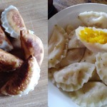 Тесто раскатываем так, как Вы привыкли это делать. Я раскатала тесто и вырезала стаканчиком кругляшки. Выкладываем на них начинку и лепим как вареники. Тем кармашкам, которые я лепила для жарки, я придала форму пирожков.