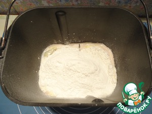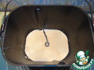 Поместить ведерко в хлебопечку, включить режим замеса теста.
