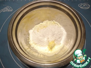 Добавить просеянную муку, сахар, соль, размягченное сливочное масло, яйцо.