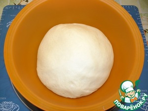 Тесто накрыть пленкой и дать подняться в теплом месте до увеличения в объеме в 2 раза.