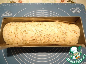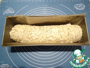 Затем "рулет" перевернуть, снова смазать яйцом и обвалять в миндальных лепестках.