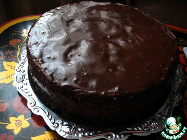 На фотографии торт «Три шоколада». Я его полностью покрыла шоколадной глазурью на желатине. Поверхность получилась достаточно плотная, что удобно при декорировании.