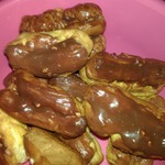 Если глазурь ровно ложится, не растекается (или наоборот, не оставляет комков), можем приступать к «покраске». На этом этапе главное прочувствовать процесс, приловчиться. Слишком густая - греем, течет – даем остыть. У меня на фото, пожалуй, глазурь еще жидковата.