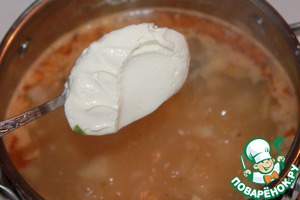 Добавить поджарку к картофелю и варить до готовности картофеля. Затем добавить сыр...