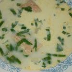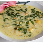 Сырный суп с форелью и шпинатом