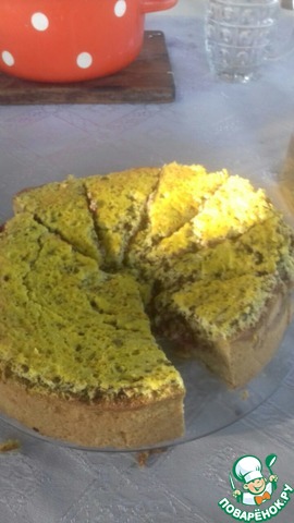 Когда время пирога (25 минут) в духовке закончится - вынимайте и полейте сверху заливкой. И обратно в духовку еще на 10-15 минут при той же температуре.