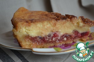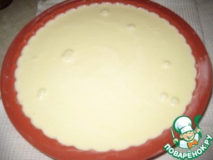 На клюкву аккуратно выливаем творожный крем. Осторожно ставим в духовку, в которой уменьшаем газ до 170 град.