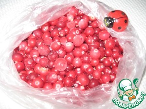 Клюкву достанем из морозилки. Ее можно не размораживать и сразу замороженную положить в пирог, но тогда у Вас появится лишняя жидкость и тесто будет более мягким. Я клюкву немного разморозила.
