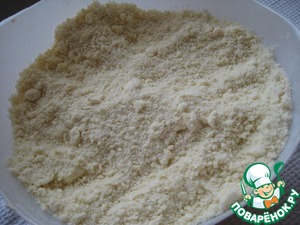 Затем аккуратно перемешиваем, перетираем руками маргарин с мучно-сахарной смесью (все делаем быстро).