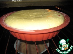 Чуть-чуть он у меня опал, но это-не страшно. Самое страшное впереди - как вынуть пирог и не повредить...