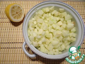 Нарезаем кубиками, перекладываем в кастрюлю, добавляем лимонный сок