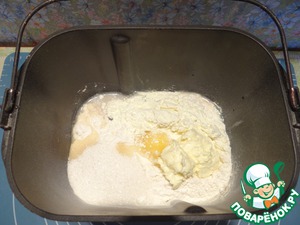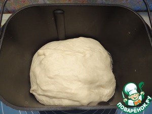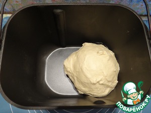 Помещаем ведерко в хлебопечку, включаем режим замеса теста.