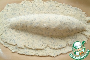 Раскатываем его на пергаменте, присыпав пергамент мукой. -