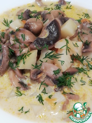 Предлагаю Вашему вниманию вкусный домашний сырный суп с сухими грибами. Данный супчик можно готовить и со свежими грибами, но из сухих грибов, как мне кажется, этот суп -более ароматный!!!