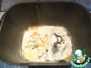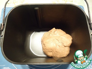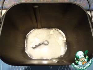 Помещаю ведерко в хлебопечку и включаю режим замеса теста.