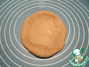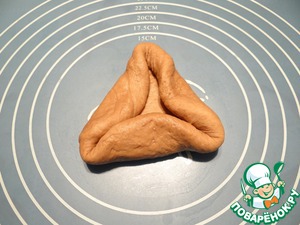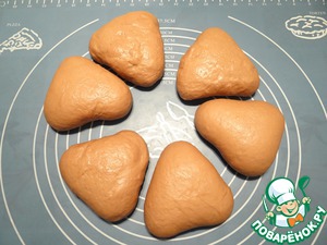 Когда тесто подошло во второй раз, уминаю его и делю на 6 равных частей.