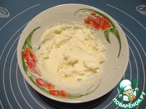 Сначала необходимо приготовить начинку. Сливочный творожный сыр и сахар взбиваем немного миксером.