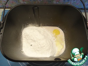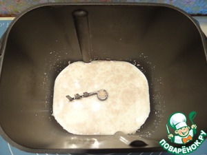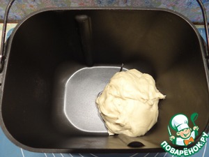 Поместить ведерко в хлебопечку и включить режим замеса теста.