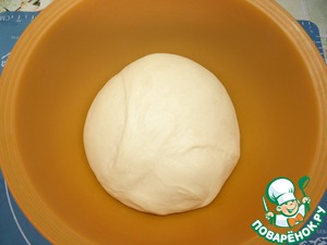 Когда тесто замесится, перекладываем его в миску, накрываем пленкой и убираем в теплое место до увеличения в объеме в два-три раза.