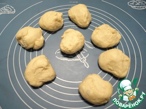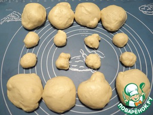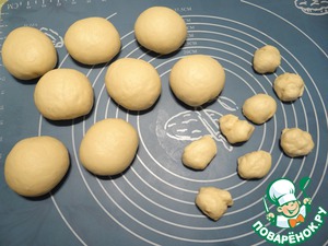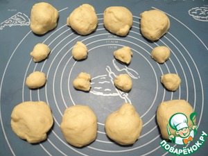 Отделяем от каждой части по кусочку теста, весом по 9 грамм.