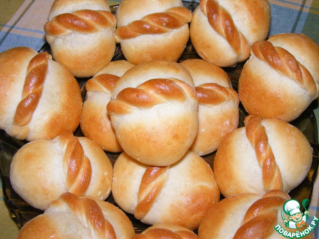 Выпекаем булочки в духовке при температуре 190 градусов до красивого золотистого цвета. Попробуйте, получаются очень мягкие и вкусные булочки! Приятного Вам аппетита!