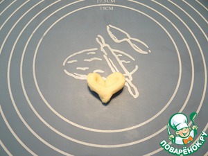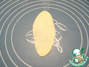 Каждую из частей весом по 7 грамм тонко раскатываем в овал