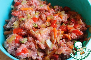 Соединим фарш с овощами, фисташками, яйцами. Все нужно хорошо перемешать. |