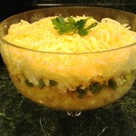 Кстати, тогда уж больше похож на салат "Карты" (Только что еще раз повнимательнее посмотрела) - только у меня не слоеный, и более походный нежели праздничный! И опять же специи...