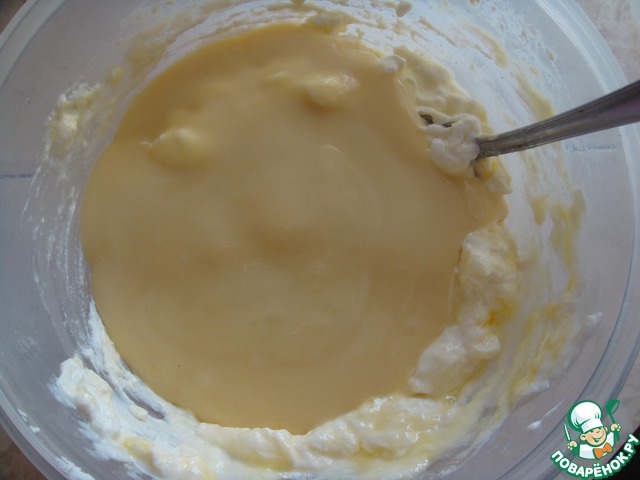 Вылить в смесь неполную банку сгущёнки (по вкусу).